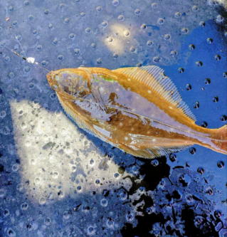 このユウレイボヤの付いたパールネットを吊るしていたノシの下にはカレイが集まっている!